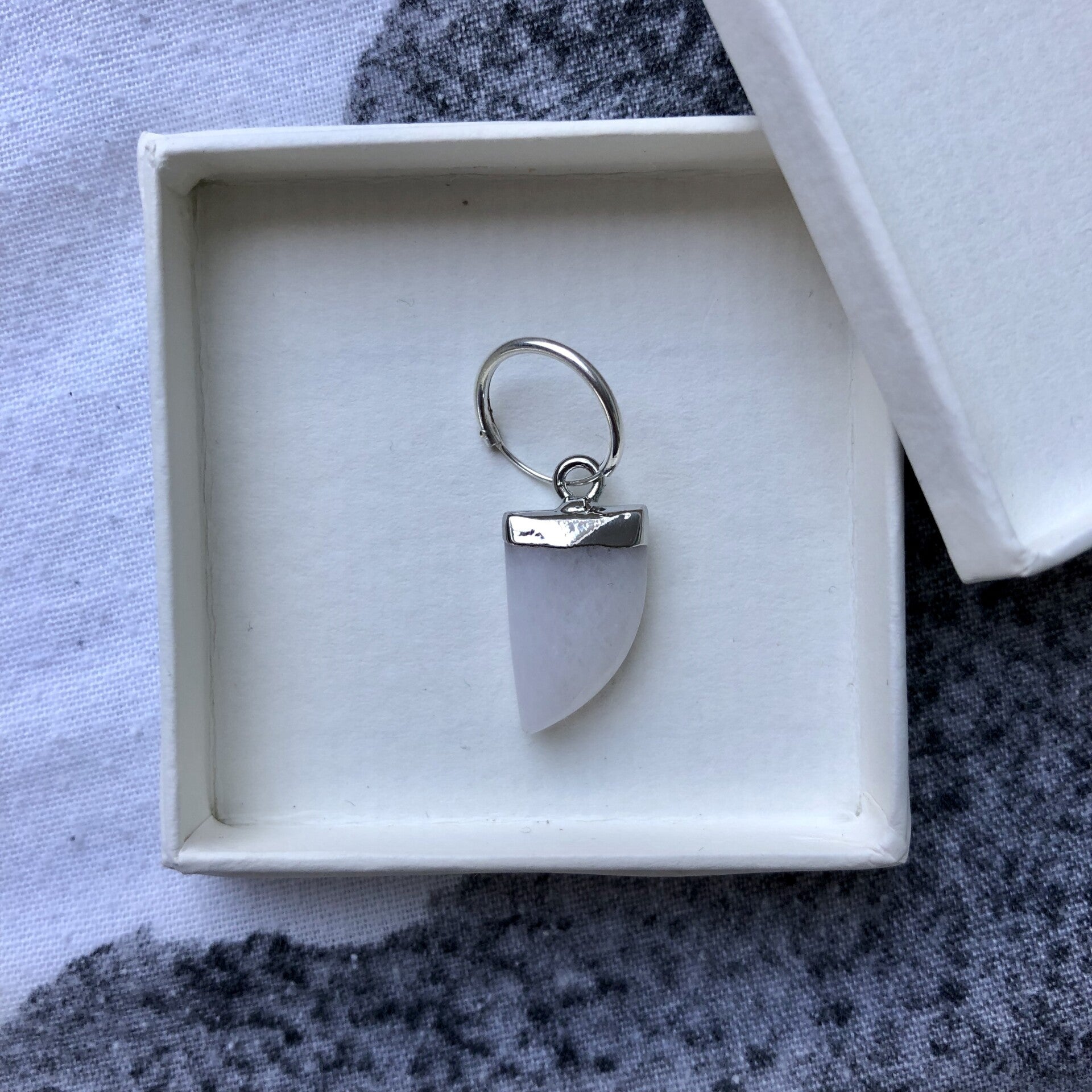 Echt zilver, per één stuk. Echt zilveren oorbel met natuursteen hanger.