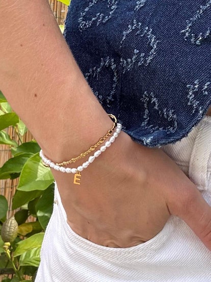 Handgemaakt zoetwaterparel armbandje met een initiaal.