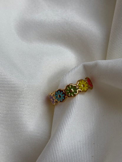 Kleurrijke ring, one size en verstelbaar, maar draagt het fijnst met ringmaat 18.
